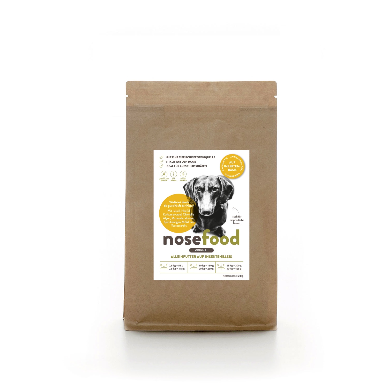 Für die Gesundheit deines Hundes deckt nosefood ORIGINAL den kompletten Bedarf an Nährstoffen, Proteinen und Fettsäuren aus ausschließlich besten und natürlichen Zutaten – frei von Getreide, Antibiotika und chemischen Zusätzen.